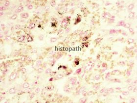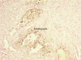 染色结果:铜为墨绿色,细胞核呈淡红色。